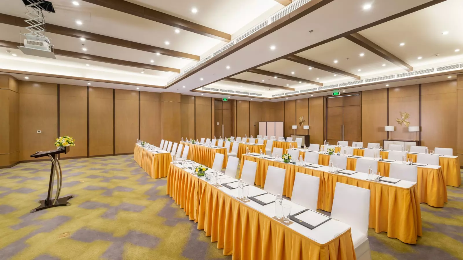 Khu nghỉ dưỡng có khu vực tổ chức các buổi tọa đàm, meeting, hội thảo với quy mô vừa và nhỏ cho các tổ chức và hội nhóm có nhu cầu. Hệ thống phòng họp được trang bị âm thanh, ánh sáng, thiết bị trình chiếu và set up bàn ghế chuyên nghiệp, lịch sự, đảm bảo đáp ứng nhu cầu hội họp của du khách.